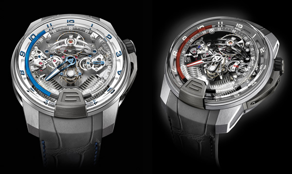 First launched in 2012, the year the 12th Art (the art of time measurement) was officially institutionalized, HYT has won over an audience of collectors keen to discover and follow disruptive movements in the field of Haute Horlogerie. Its unique ‘fluide mechanics’ concept, bringing together traditional ‘enemies’ and displaying the time in a completely original way, along with the powerful character of its design, made it an immediate hit. By way of reminder, an aqueous liquid filled with fluorescein makes its way from a flexible reservoir up a capillary tube to a second reservoir containing a transparent viscous liquid. The respulsive force of the molecules in each liquid keeps them separate. Their progression is orchestrated by two V-shaped bellows at 6 o’clock, acting in reverse order and inspired by NASA speed sensors : when one is compressed, the other expands, pushing the fluids along the circular tube and thus driving the time indication. Upon reaching 6 o’clock, the fluorescent liquid thus returns to its reservoir, again by dint of the extremely slender piston-driven bellows. This retrograde, hybrid movement featuring an 8-day power reserve (a specific feature of the H2) benefits from an encounter between a world-first collaboration between two circles: the med-tech sector from which the fluid technology is derived; and watchmaking technology, a field in which the HYT management relied on the expertise of Chronode. Eight patents testify to the degree of innovation and complexity of the products created by the Hydro Mechanical Horologists. Plenty of liquid has indeed flowed beneath the titanium bridges since these models were introduced. The initial four-strong staff has now grown to around 30. Internal integration of fluid technologies has further improved both quality and the quantities produced – with the brand aiming for around 50 watches per month since the fall of 2013. Far from being a mono-product phenomenon, the concept now encompasses 19 different references and the H2 collection stems from collaboration with the APRP development specialists headed by Giulio Papi. The three main focuses of this new line, established by the CEO of HYT, Vincent Perriard, relate to colors, materials, and as ever to fluids. The technological stage-setting of the H2 is even more sophisticated than the H1, notably including its watchmaking decoration and the broad opening onto the mechanical ‘back-stage view’ of the timepiece: the sprung balance appears at noon on microblasted titanium bridges; the central minute hand is layered in such a way that it runs alongside the fluid system and instantly jumps across the bellows; the function indicator appears at 3 o’clock; while a thermal indicator shows whether the temperature range in which the watch is operating is ideal for smooth handling. The original yellow fluid is joined by blue and red shades according to the limited series, framed by cases in gold, titanium or platinum. Innovative new thematic surprises are on the horizon for collectors and can be checked out at worldtempus.com.