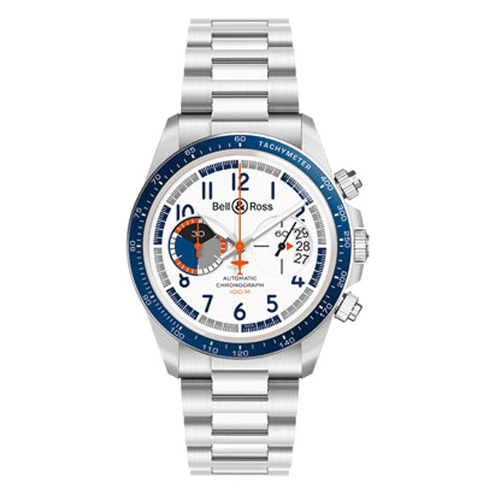 Das von der Uhrenmarke konzipierte Flugzeug BR-Bird, das sogar am extremsten Geschwindigkeitswettbewerb Reno Air Races teilnehmen kann, diente als Inspirationsquelle für diesen auf 999 Exemplare limitierten Chronographen, mit dem es ästhetische Elemente wie Farben und Typografie der Bordzähler teilt.