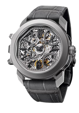Wenn das Zifferblatt von der Bühne geht, rücken die Räderwerke ins Rampenlicht. Und wenn das Werk dann ein grosses und ein kleines Läutwerk mit vier Hämmern und gleichzeitig einen Tourbillon enthält, ist seine technische Erhabenheit der des allerschönesten Zifferblattes ebenbürtig.