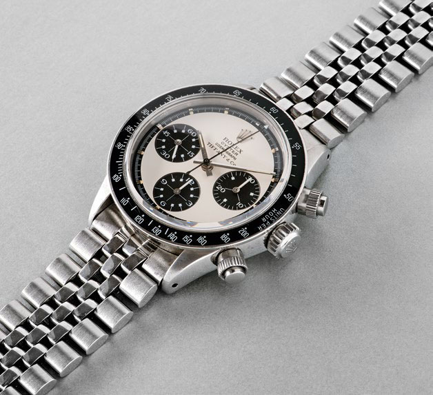 While upper estimates for several Rolex watches in this auction are near the half-million franc mark, reference 6085 featuring a cloisonné enamel dial depicting a dragon hits six figures. To date, only five Rolex watches worldwide are known to be adorned with a dragon on the original dial, each housed in a different reference – thereby making this model quite probably unique. The splendid dial of this 1951 “Dragon” also reflects remarkable craftsmanship. And after the dragon’s claws, on to the thorns of the “Perfect Rose”, the nickname of this pink gold reference 3330 from the 1940s. Its extraordinarily pristine condition gives the impression that it has never been worn and the estimate ranges from CHF300,000 to 600,000. The same state of preservation and the same figures apply to reference 6538 in this sale, a 1950s “James Bond” Submariner that is even rarer because of the four lines of text on the dial. Its estimate is a record for this reference.
