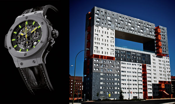 As everybody knows by now, Hublot cultivates close ties with Monaco and Jean-Claude Biver is a confirmed enthusiast of maritime adventures. Even more appropriately than the Monaco Yacht Club of which Hublot is official timekeeper, the Oceanographic Museum served as a perfect setting for the launch of the new Hublot diver’s watch that is water-resistant to 4,000 metres: the King Power Oceanographic 4000. Two limited numbered series of 1,000 in titanium and 500 in carbon fibre will probably not be enough to satisfy all those who wish to assert themselves in a world of sharks, but that’s doubtless part of the recipe for success. The sturdy and readable Oceanographic 4000 plays on the usual contrasts of new-generation Hublot models, with satin-brushed and shotpeened titanium, matt carbon fibre and composite resin lateral inserts and lugs.
