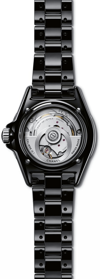 The model under scrutiny in this test bench picks up the aesthetic codes, definition and color of the black ceramic original. Fundamentally, the most radical change is the movement that will automatically imply aesthetic adjustments. While the diameter of the case remains unchanged at 38mm, endowing it with a universality that abolishes the notion of gender so dear to watchmakers, its thickness has been slightly increased, an effect softened by the now gently curving case middle. A sapphire crystal caseback has been chosen to highlight the Manufacture-made caliber. The entire case is made of ceramic, whereas the previous versions were fitted with a solid steel caseback. The crown is 30% smaller. To detect the other tweaks, it is advisable to play a “spot the difference” game in order to list them accurately. While ceramic is heavy by nature, Chanel has managed to reduce its weight compared with previous models and its moderate size contributes to the undeniable wearer comfort of the J12.