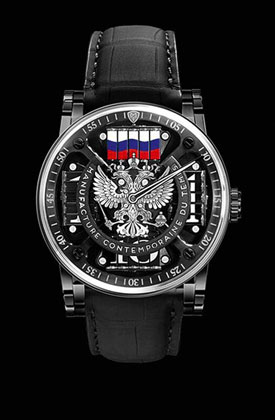The SEQUENTIAL TWO – S200 EAGLE is an exclusive model produced in a strictly limited 10-piece edition for the Russian retailer Rich Time. Equipped with the signature MCT prism-type hours display, it features a twin-headed eagle that turns at each full hour and a Russian flag that appears once a day, at noon and midnight.