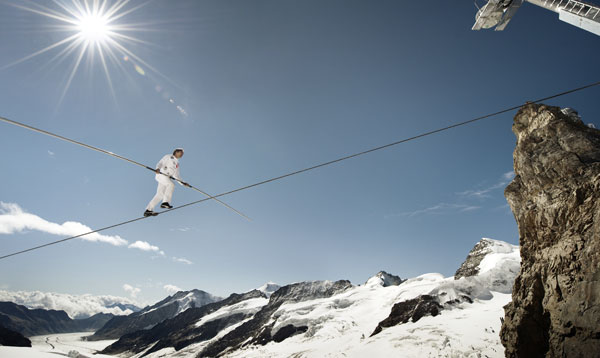 A niche brand for discerning collectors, Cyrus is full of surprises on every front : watchmaking content (developed for certain models in collaboration with talented watchmaker-designer, Jean-François Mojon) that has already won awards and is to be reinforced by the building of a manufacturing facility; marketing content based on the history of the Emperor Cyrus the Great dating back 2500 years; along with completely unexpected, high-flying partnerships. While the sponsorship of the Star Team for Children tournament under the auspices of His Highness, Prince Albert of Monaco, is nothing unusual despite its exclusive character, sponsoring tightrope walker Freddy Nock is definitely a first. Risky ? Noteworthy, in any event, reflecting the all-conquering personality of both Cyrus and its CEO and co-founder, Laurent Lecamp. A descendant of one of the oldest circus dynasties in the world, Freddy Nock was introduced to tightrope walking at four years old, and took on his first high-strung cable at ten. At the same age, Cyrus was elected king by his peers, before, according to writings from the era, becoming “king of three quarters of the world” through his victories, the most famous of which was the taking of Babylon. Exceptional willpower is the keynote in the increasingly amazing exploits of Freddy Nock, who takes on temperatures of down to -15 degrees Celsius, winds of up to 80 km/h and heights up to 3300 m without batting an eyelid. Regularly setting one world record after another at ever-greater heights on increasingly long cables, last summer he managed to do seven in seven days. From this winter onwards, he intends to achieve his next successes with a Cyrus on his wrist, or even a watch on each wrist, while doing without a balance bar.
